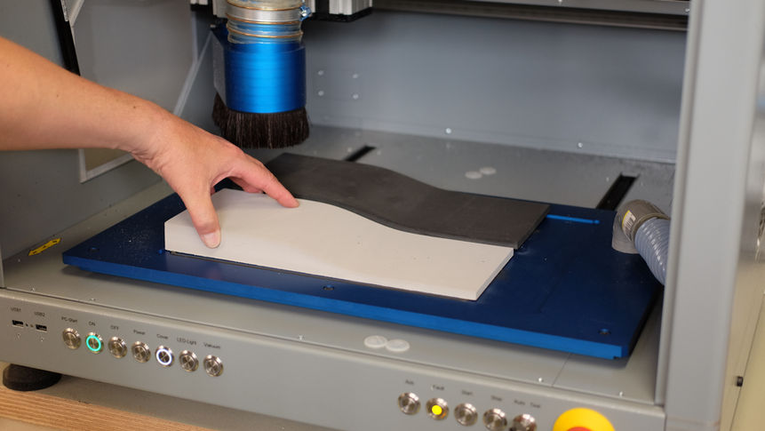 Het ontwerp dat digitaal beschikbaar is kan direct verwerkt worden met de digitale freesmachine. De te frezen materialen hebben verschillende eigenschappen qua hardheid, zodat niet alleen de vorm maar ook het materiaal voor de zool comfortabel en functioneel is. Na het frezen wordt de steunzool netjes afgeschuurd en afgewerkt. Door het gebruik van de nieuwe 3D scanners werkt Voetzorg Noord-Holland sneller en accurater.